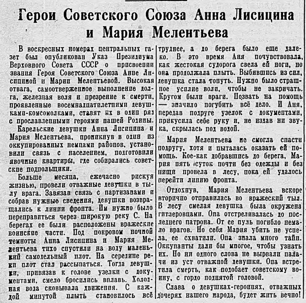 Герои Советского Союза Анна Лисицына и Мария Мелентьева
