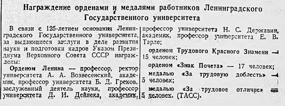 Награждение орденами и медалями работников Ленинградского Государственного университета