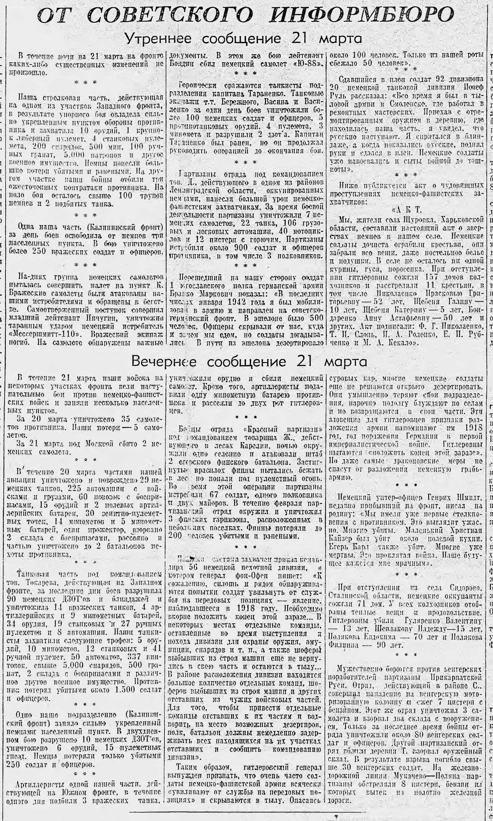 От Советского Информбюро (Утреннее и вечернее сообщения 21 марта)