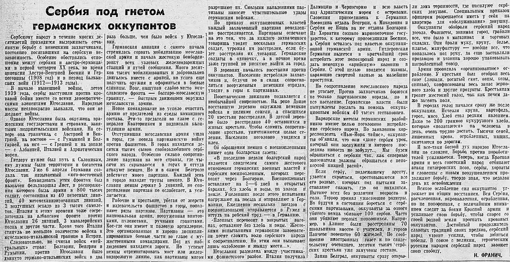 Сербия под гнётом германских оккупантов