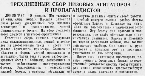 Трехдневный сбор низовых агитаторов и пропагандистов