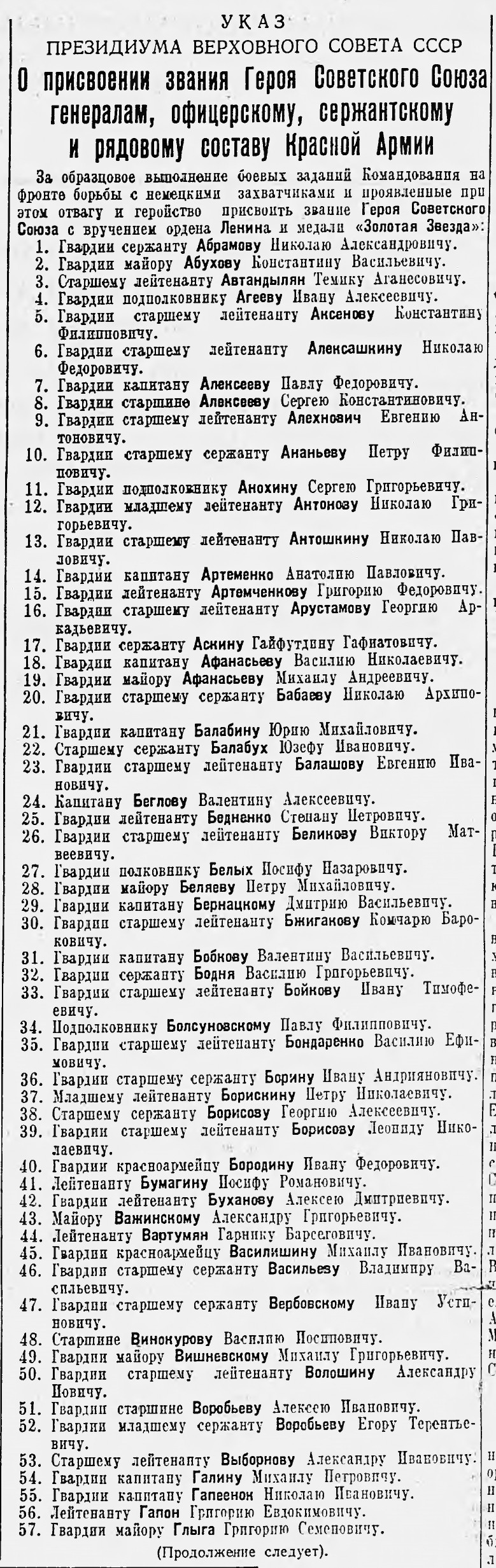 Указ Президиума Верховного Совета СССР о присвоении звания Героя Советского Союза